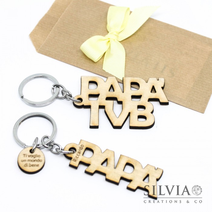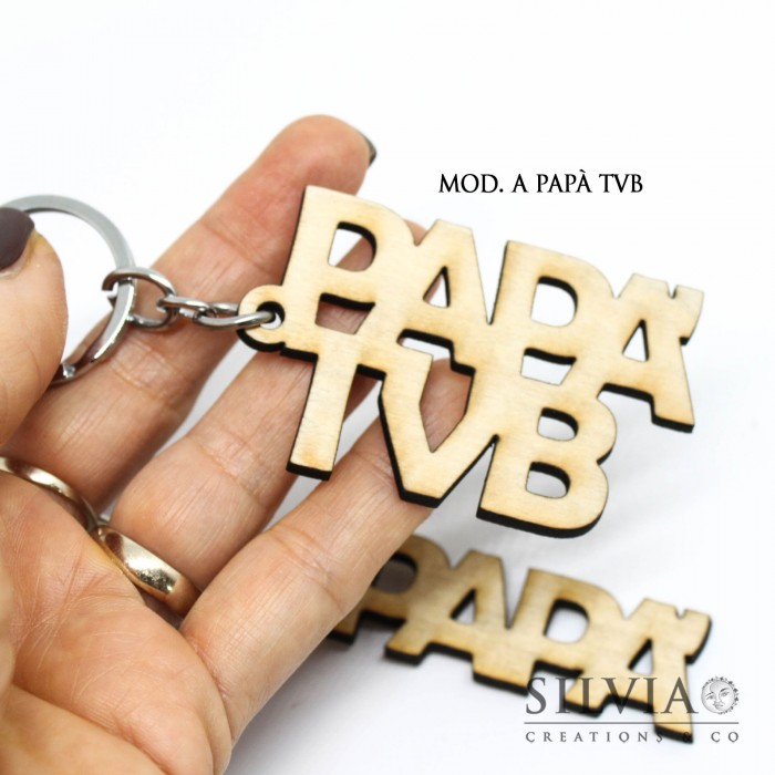 Portachiavi sagoma in legno papà tvb o papà con targhetta incisa