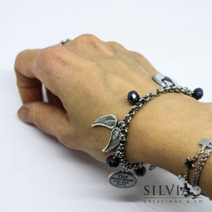 Per tutti gli appassionati del mondo fantasy, ho creato questo bracciale ispirandomi al personaggio di Malefica, bellissima creatura fatata dalle grandi e possenti ali, che vive nel pacifico regno della brughiera in compagnia di creature fantastiche.