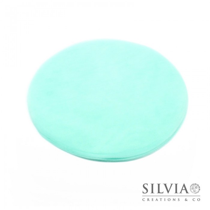 Disco in tulle adatto a confezionare i confetti per le vostre bomboniere fai da te. Il disco è di color azzurro acqua e misura 23 cm di diametro