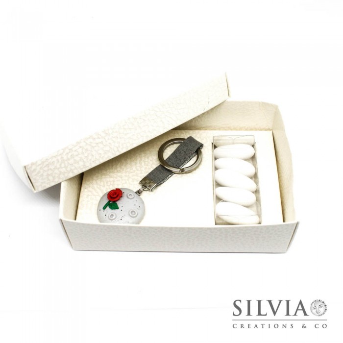 Scatola combinata pelle bianca per bomboniere 130x90x40mm