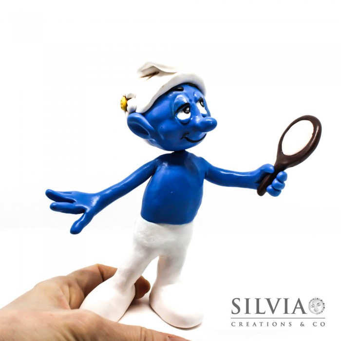 soprammobile per tutti gli amanti delle piccole creature blu! Il cake topper rappresenta Puffo Vanitoso ed è alto 16 cm.