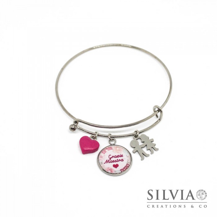 Bracciale bangle con ciondolo "Grazie Maestra" e charms