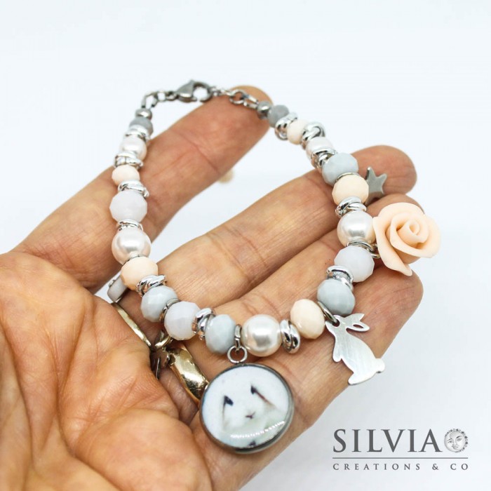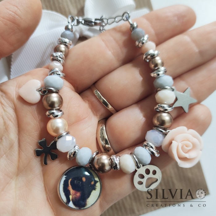 Bracciale personalizzato con fotografia cane gatto o coniglio e charms