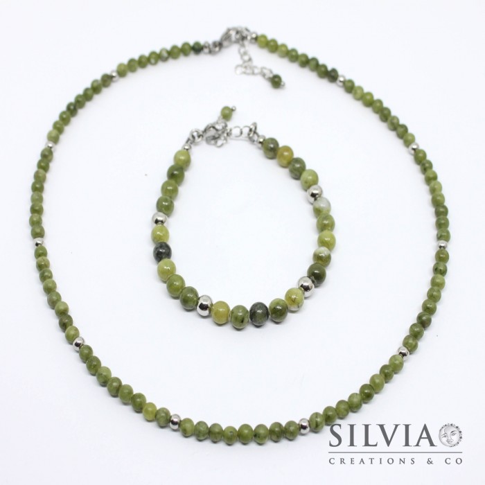 Ho realizzato questo bracciale da uomo con delle perle di giada verde da 6 mm, intervallate da perle in acciaio. Il bracciale presenta una chiusura a moschettone anch'essa in acciaio.
