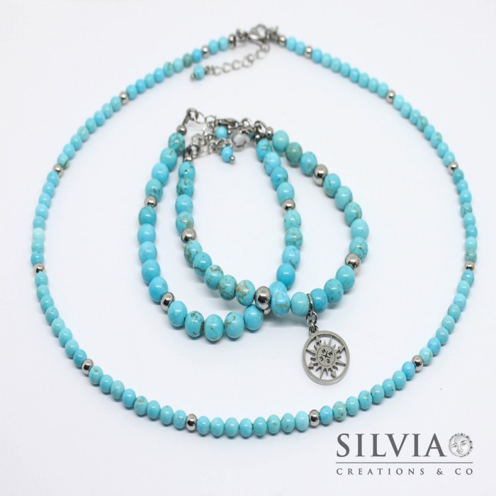 Collana uomo con perle di turchese da 4 mm e perle acciaio