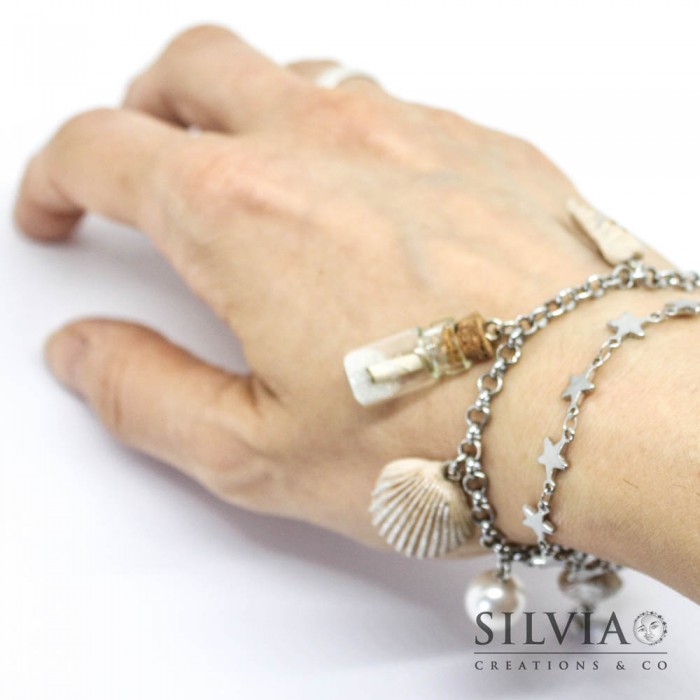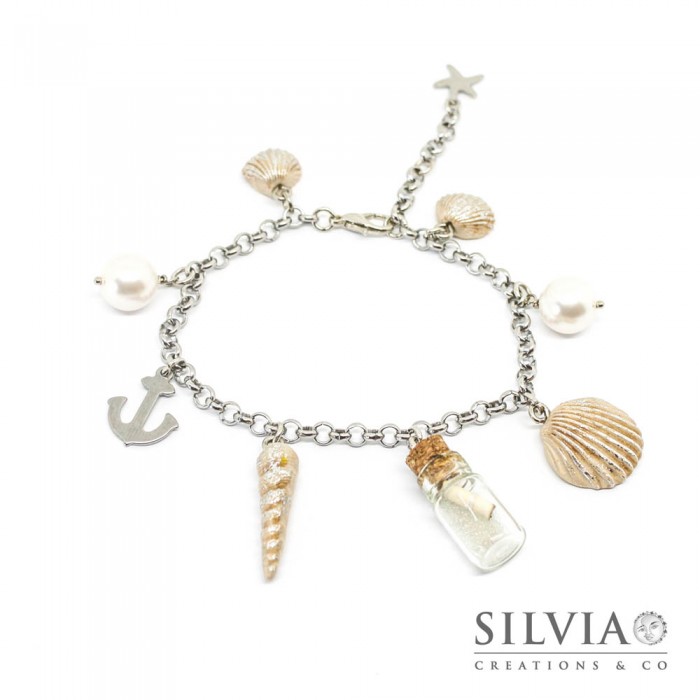 Bracciale catena con charms conchiglie e "message in a bottle"