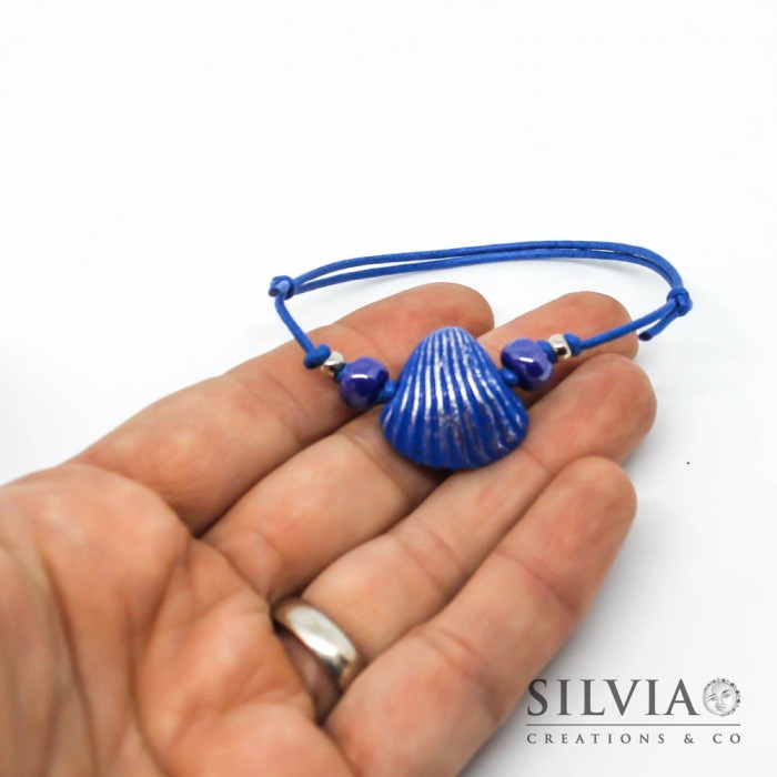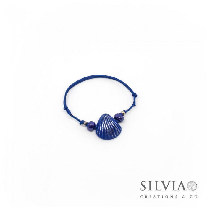 Bracciale cordino cerato con conchiglia blu