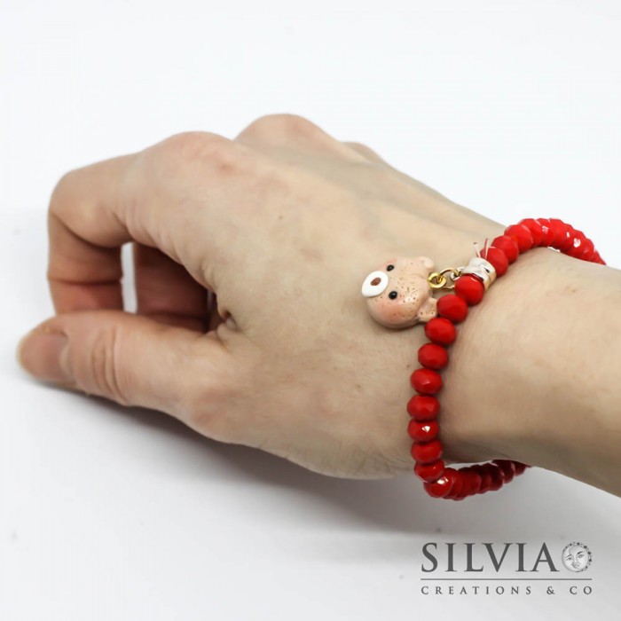 Bracciale elastico con cristalli rossi e musetto orsetto peluche