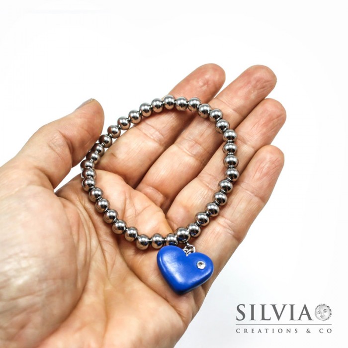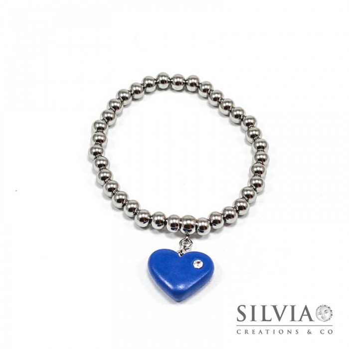 ciondolo misura circa 22x18 mm ed è a forma di cuore blu. Questo è fissato al bracciale