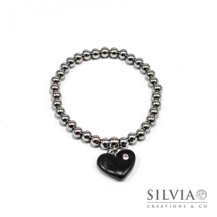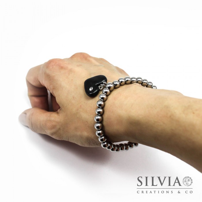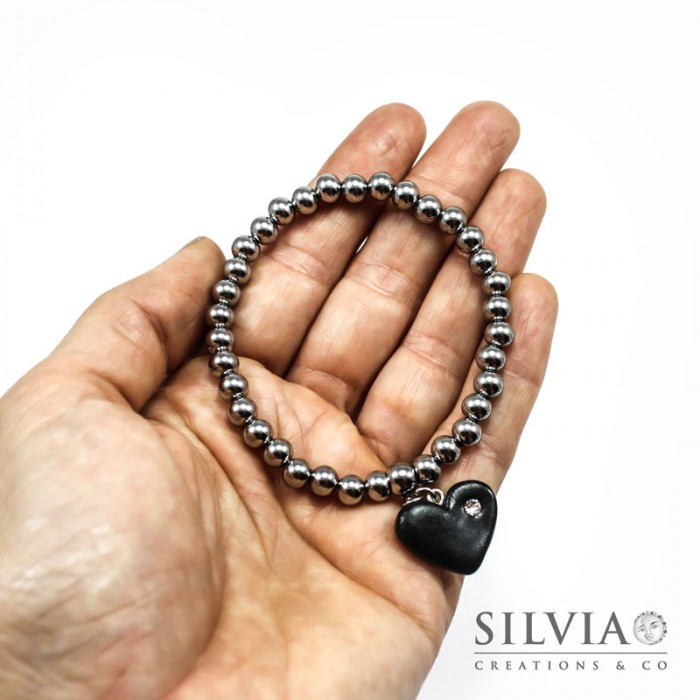 ciondolo misura circa 22x18 mm ed è a forma di cuore nero. Questo è fissato al bracciale