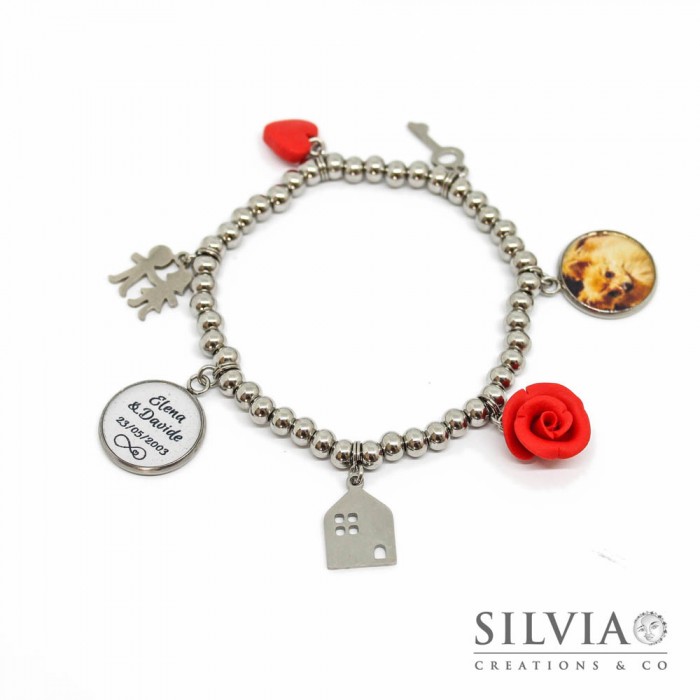 I ciondoli sono fissati ad una base elastica composta da perline d'acciaio e possono essere da 4 o da 5 mm a scelta.