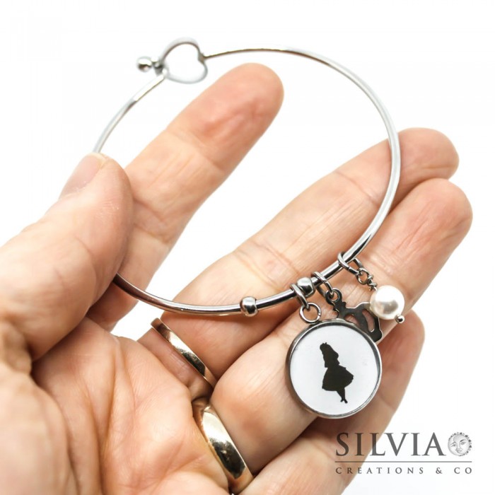 Bracciale bangle in acciaio Alice in Wonderland inspired