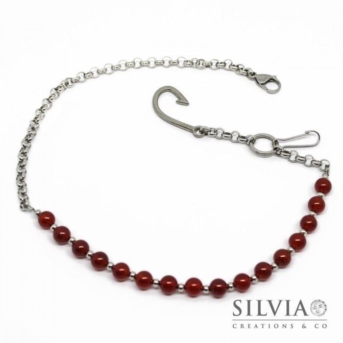Collana uomo con perle di corniola da 4 mm e perle acciaio