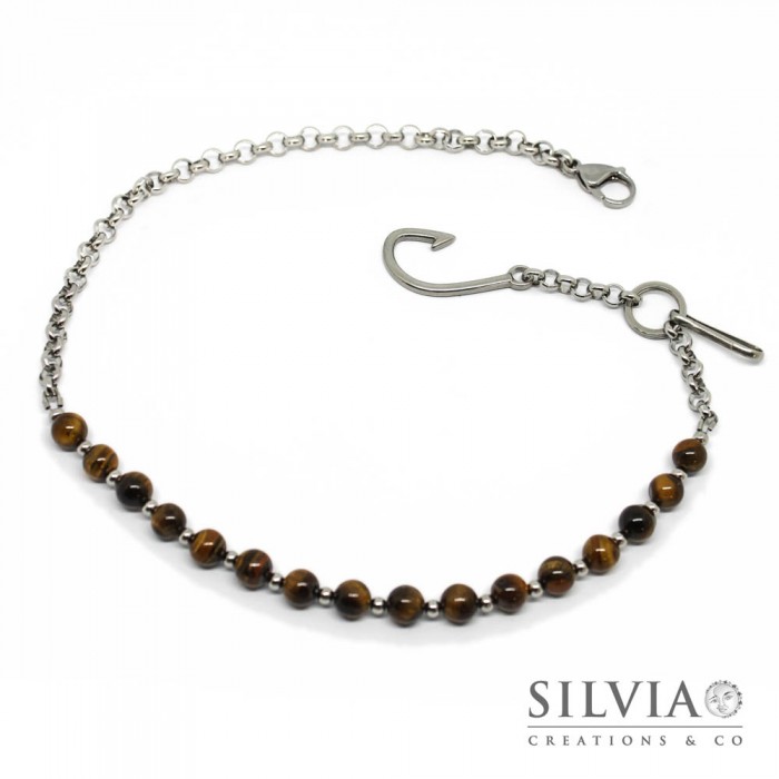 di tigre, delle perle in acciaio, una catena in acciaio e delle chiusure
