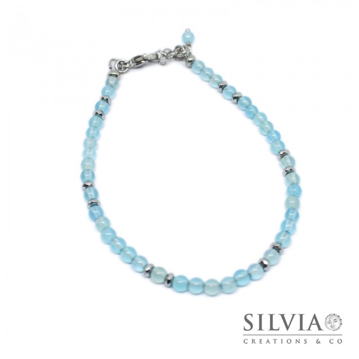 Bracciale donna con perle di agata azzurra e ciondolo fiore non ti scordar di me