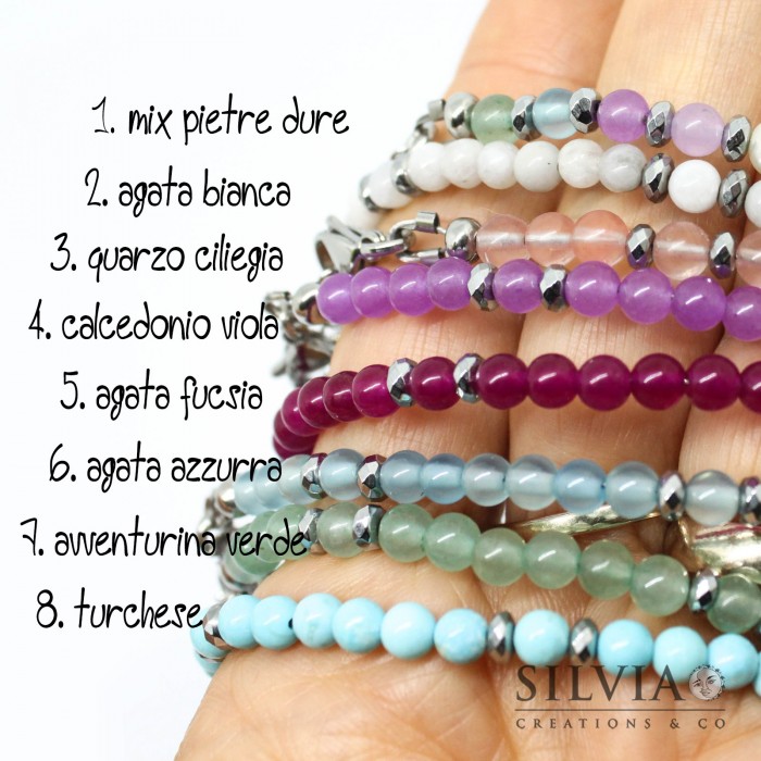 Cavigliere da donna con pietre dure naturali a scelta tra: 1. mix di pietre dure, 2. agata bianca, 3. quarzo ciliegia, 4. calcedonio viola, 5. agata fucsia, 6. agata azzurra, 7. avventurina verde, 8. turchese.