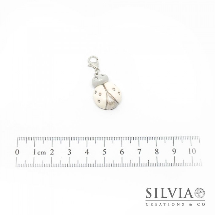 a forma di coccinella color bianco e grigio con 6 pallini sul corpo color argento e due strass al posto degli occhietti.