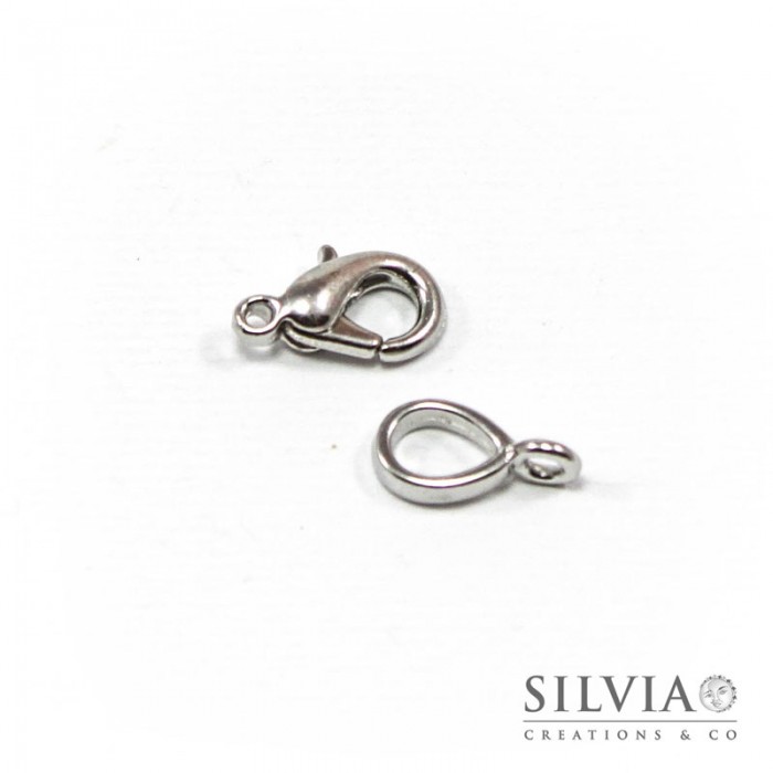Chiusura a moschettone e contromaglia color rodio in zama da