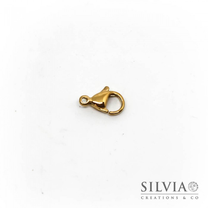 Chiusura a moschettone color oro in acciaio da 13x8 mm