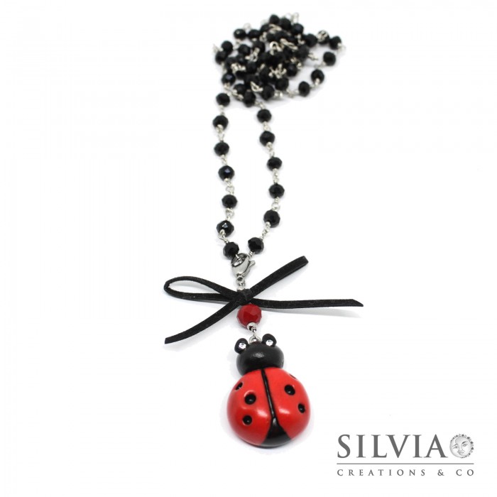 Collana girocollo con catenina in acciaio e coccinella rossa