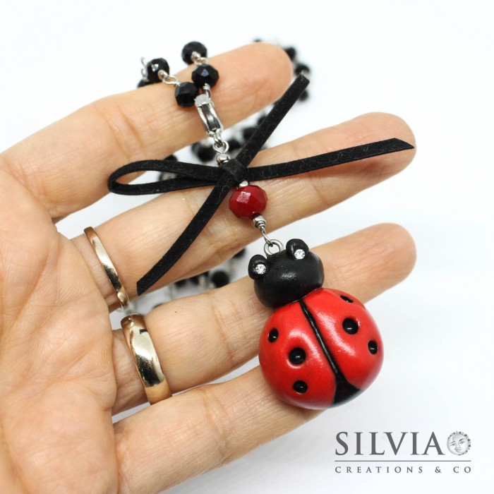 coccinella è fissata con un moschettone ad una catena a rosario in ottone della lunghezza