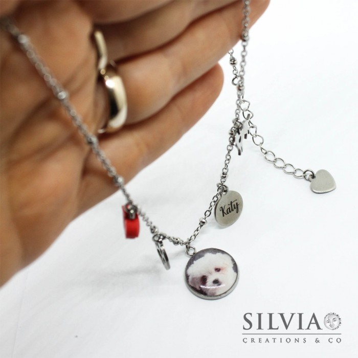 Collana girocollo personalizzata con fotografia cane gatto o coniglio e charms