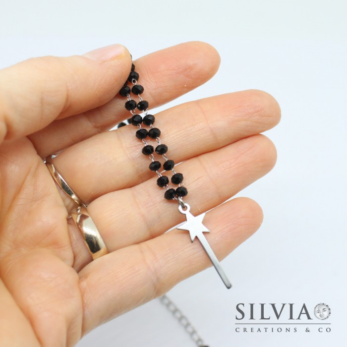 Collana girocollo catena acciaio con cristalli neri stella e campanellino