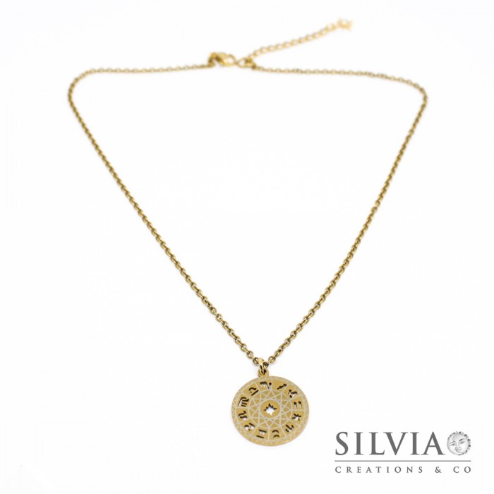 Collana girocollo e medaglietta con costellazioni astronomiche in acciaio dorato