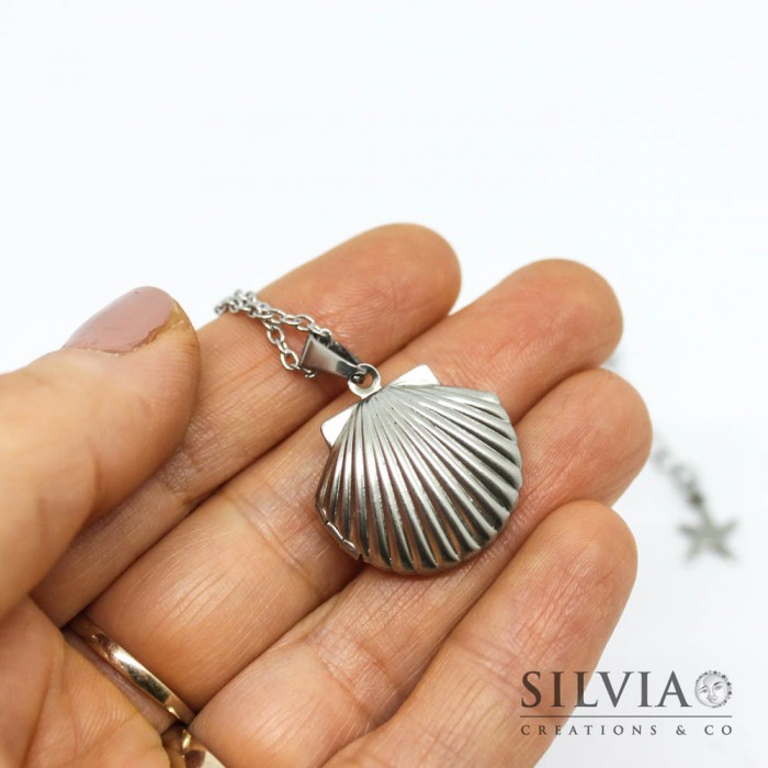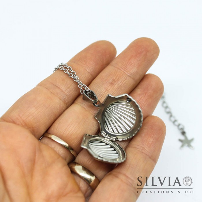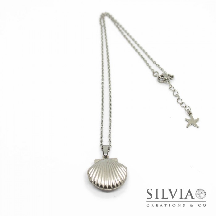 Collana girocollo catena acciaio con conchiglia portafoto