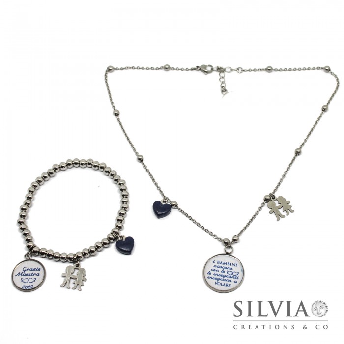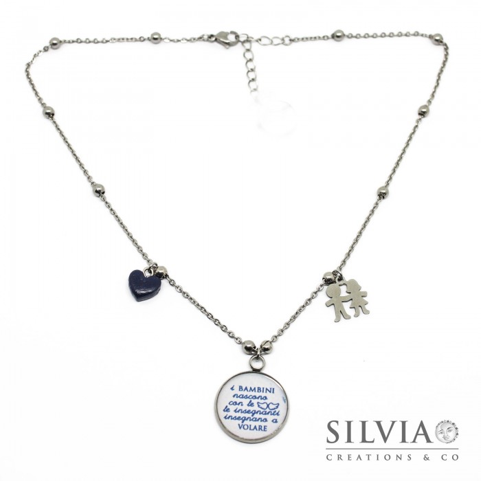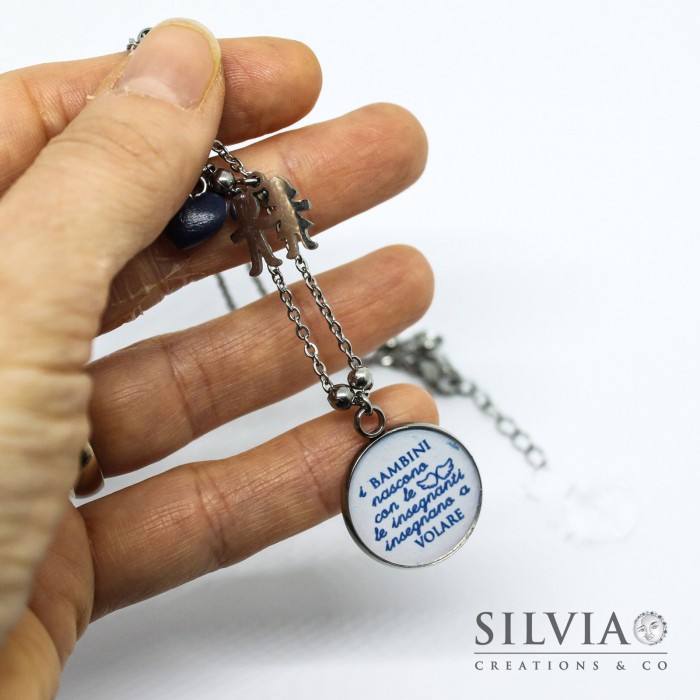 Collana girocollo per maestra con frase i bambini nascono con le ali e charms