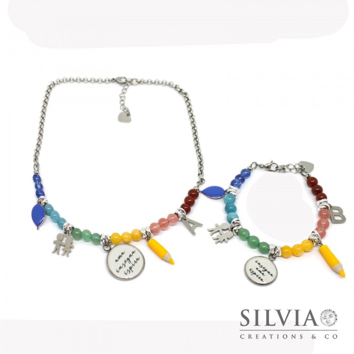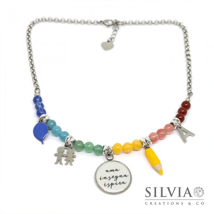 Collana girocollo per maestra con frase le cose più importanti e charms