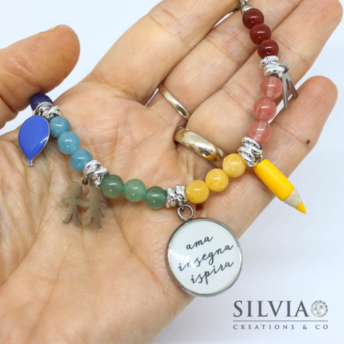 Bracciale bangle con ciondolo "Grazie Maestra" e charms