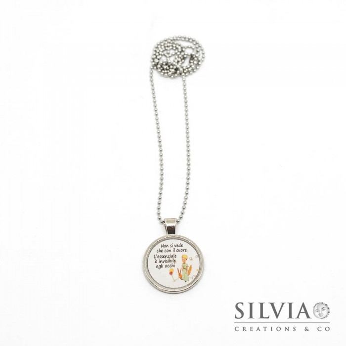 Collana lunga catena acciaio frase tratta dal Piccolo Principe da 25 mm