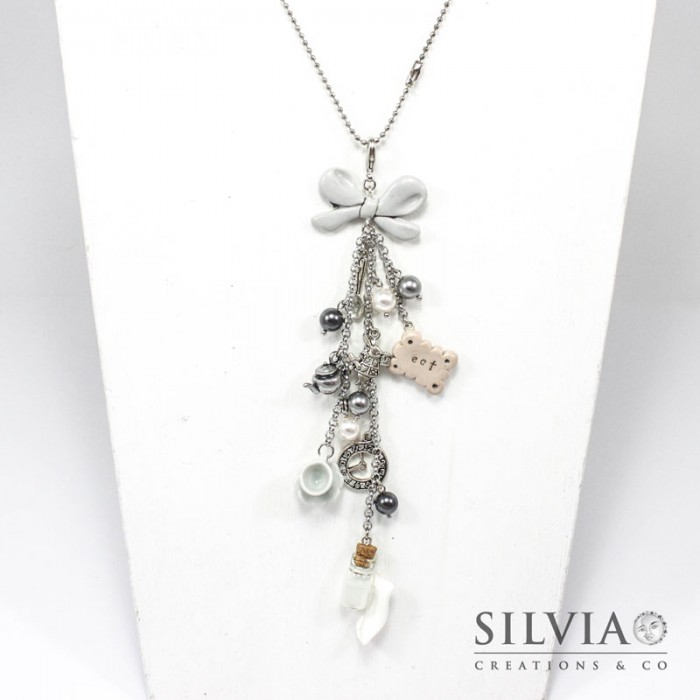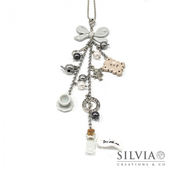 Collana lunga Alice in Wonderland inspired con charms rodio