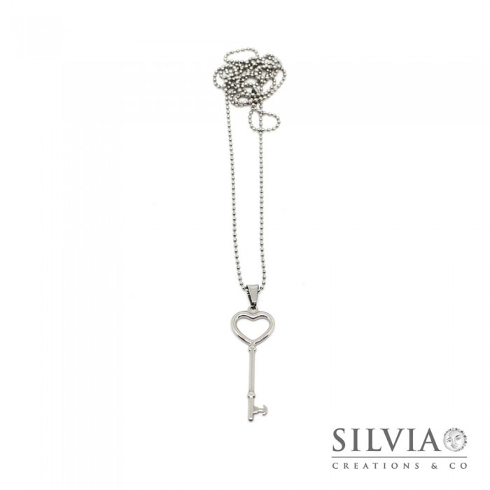 Collana lunga con chiave a forma di cuore in acciaio da 50mm
