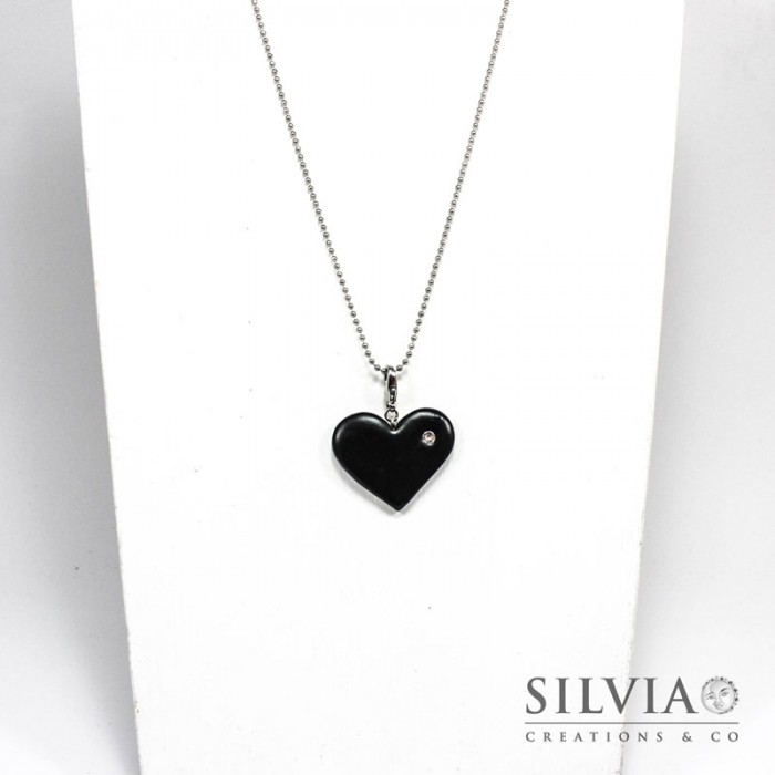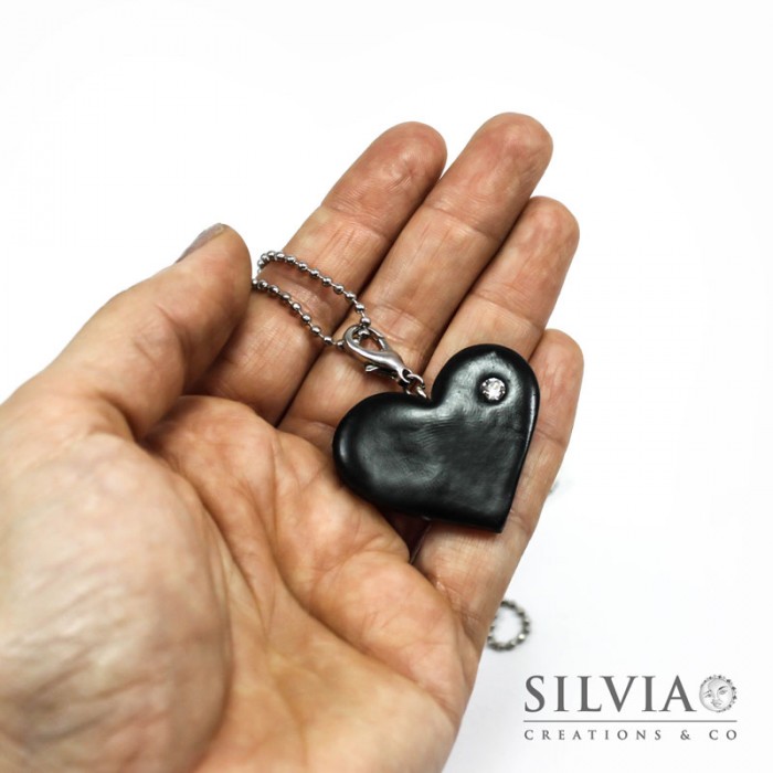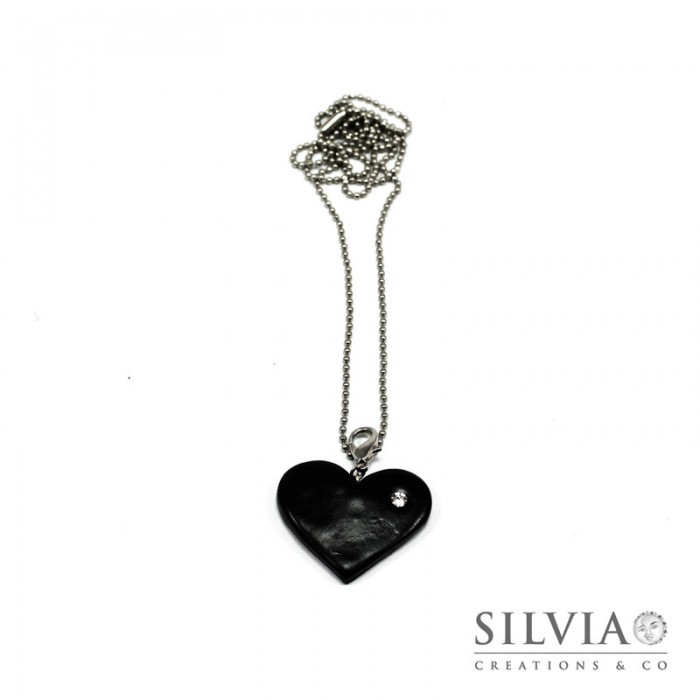 fimo. Il ciondolo è a forma di cuore color nero, misura circa 40x33 mm e