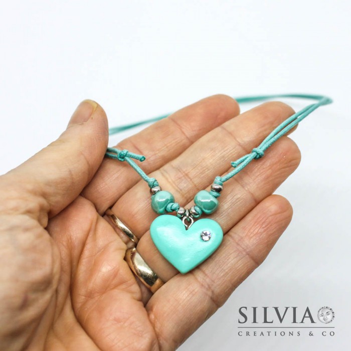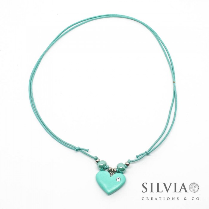 Collana cordino cerato con cuore azzurro acqua