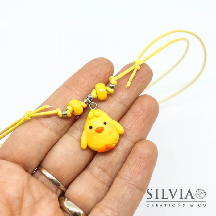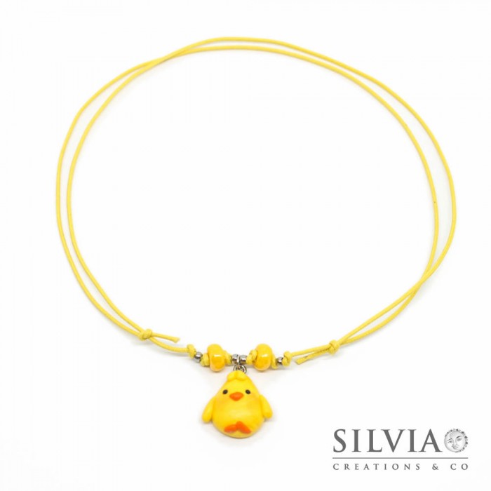 Collana cordino cerato con pulcino giallo