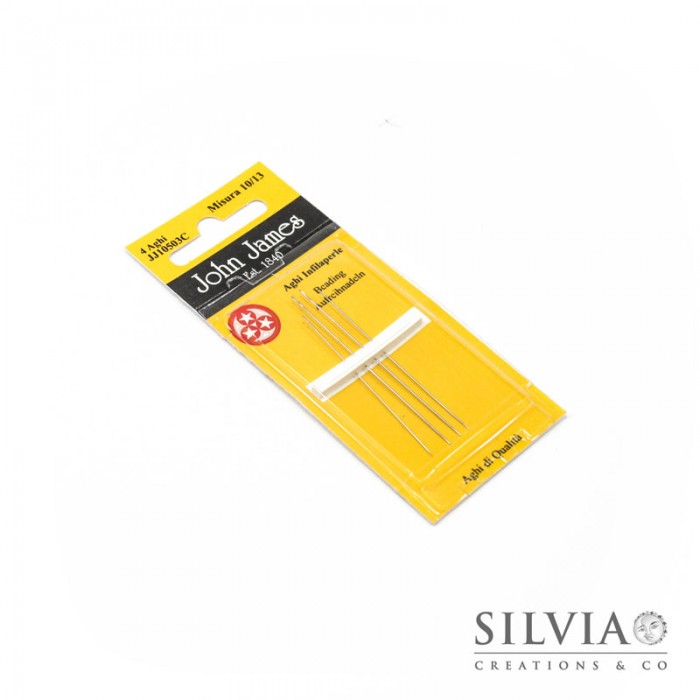 Set di 4 aghi infilaperle mis. 10/13. Aghi con cruna per bigiotteria John James. La confezione