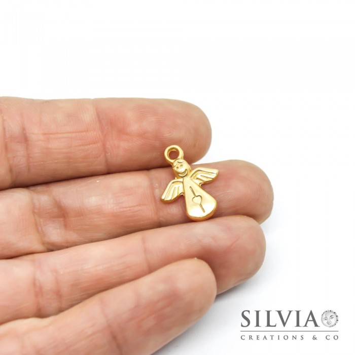 Charm a forma di angelo oro opaco in zama 17x12 mm