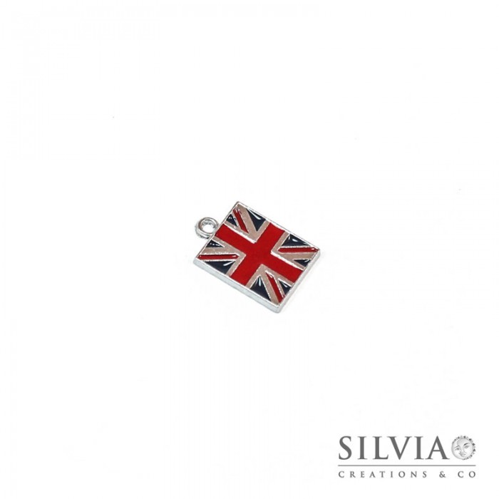 Charm a forma di bandiera inglese smaltata in zama 22x15 mm. La base è color rodio, lo