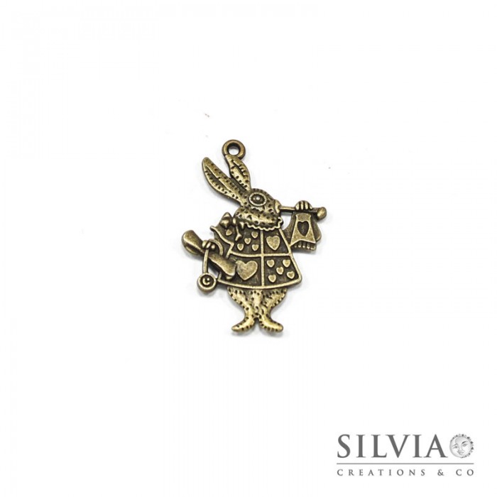 Charm a forma di Bianconiglio color bronzo in zama da 36x25 mm. Confezione da 1 pezzo.