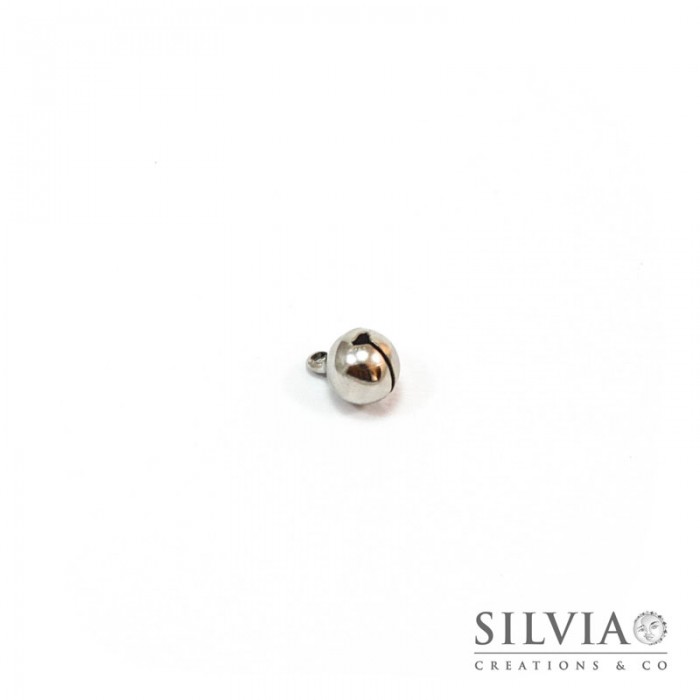 Charm a forma di campanellino color rodio in zama da 13x10 mm. Confezione da 1 pezzo.