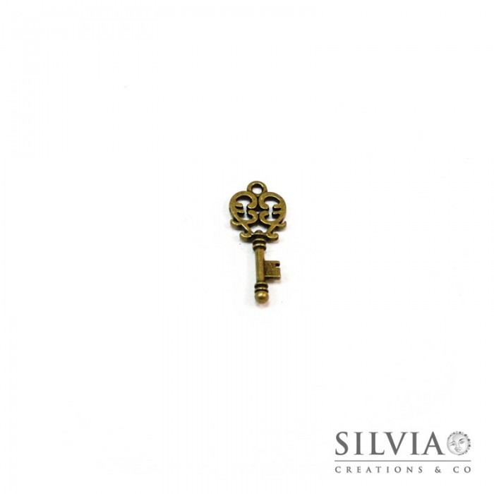 Charm a forma di chiave color bronzo in zama da 26x11 mm. Confezione da 1 pezzo.