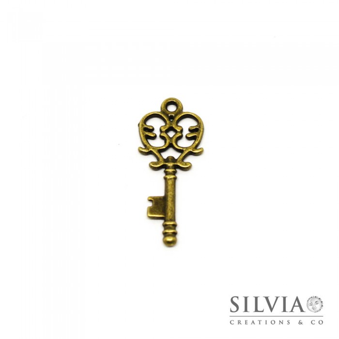 Charm a forma di chiave color bronzo in zama da 33x14 mm. Confezione da 1 pezzo.