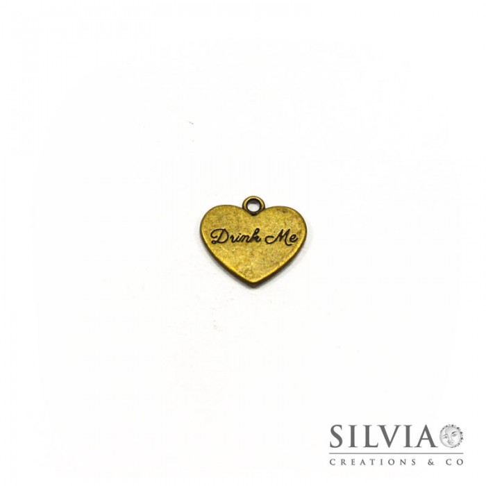 Charm a forma di cuore "drink me" bronzo in zama 21x19 mm
