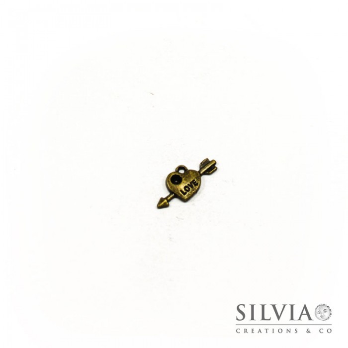 Charm a forma di cuore con freccia bronzo in zama 21 mm