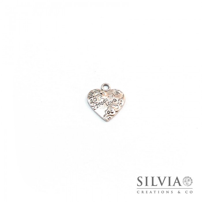 Charm a forma di cuore made with love argento antico in zama 19x17 mm