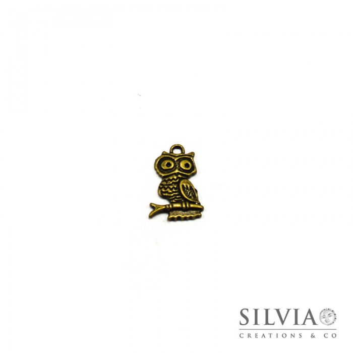Charm a forma di gufo su ramo bronzo in zama 22x15 mm