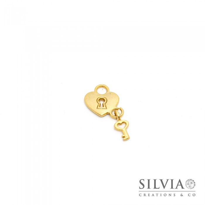 Charm a forma di lucchetto a cuore con chiave oro opaco in zama 15x13 mm